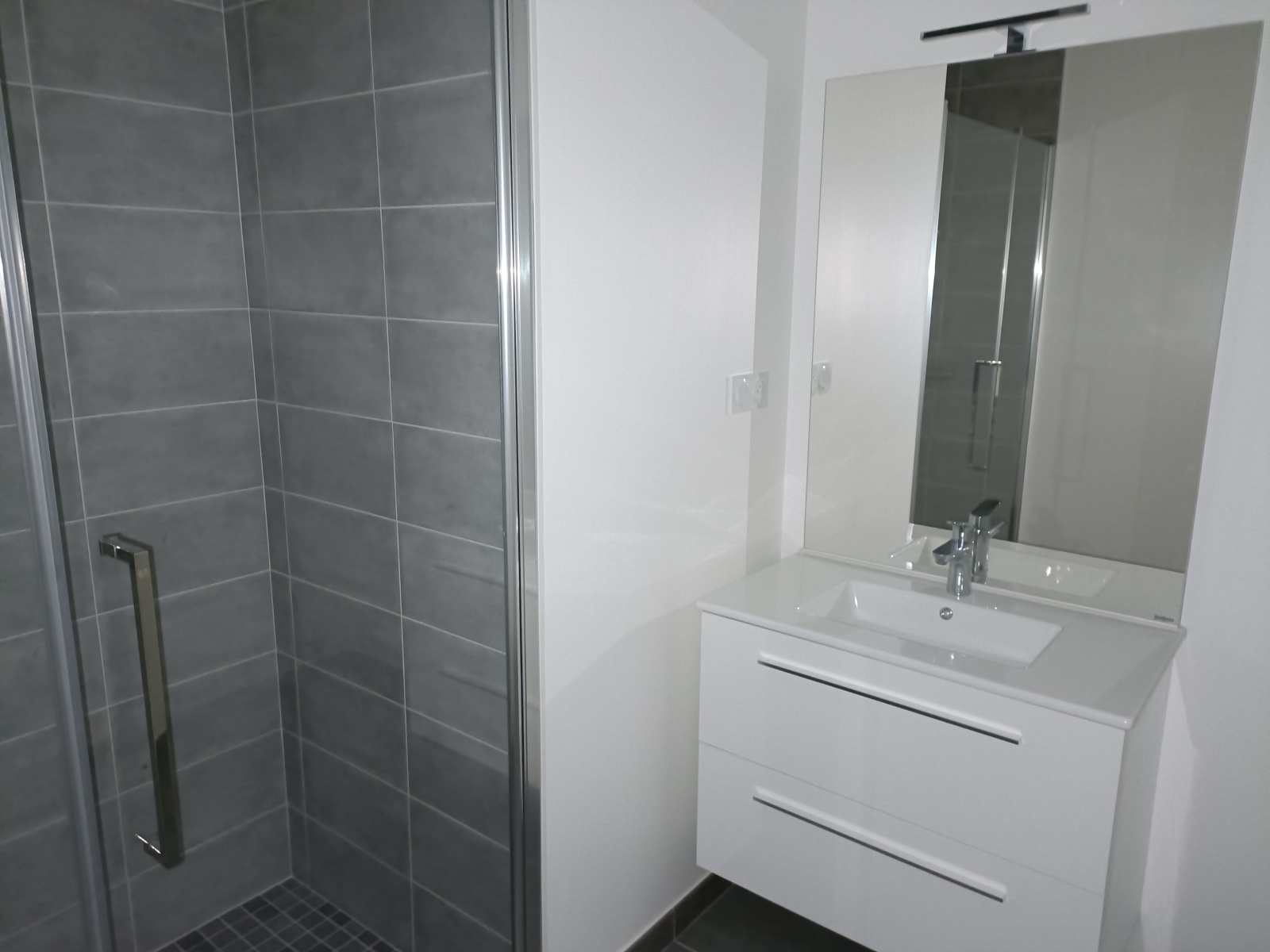 Entrée avec placard, pièce de vie de plus de 31m2 (donnant sur la terrasse de plus de 10m2) avec cuisine américaine aménagée et équipée, 2 chambres, dont 1 avec placard, salle d'eau spacieuse avec douche à l'italienne, WC séparés.